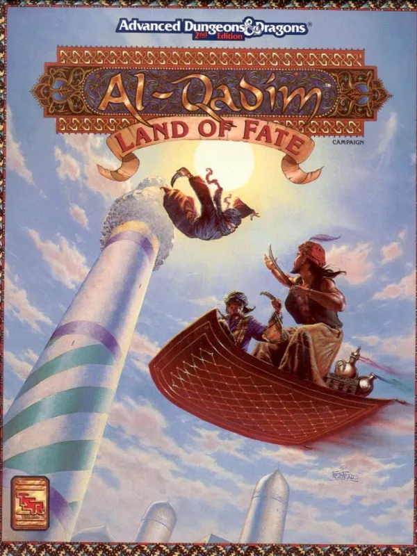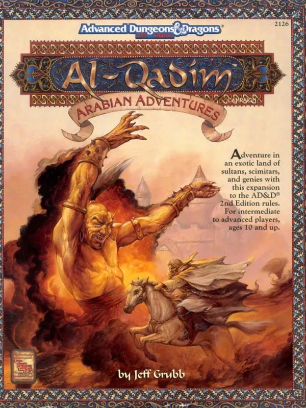 Al-Qadim is an Arabian Nights-themed campaign setting for the Dungeons & Dragons role-playing game. The setting was developed by Jeff Grubb for TSR, Inc., and was first released in 1992. Al-Qadim is set in the land of Zakhara, called the Land of Fate. Thematically, the land of Zakhara is a blend of the historical Arabian Empire, the stories of legend, and a wealth of Hollywood cinematic history. Zakhara is a peninsula on the continent of Faerûn in the world of Toril, the locale of the Forgotten Realms campaign setting, although Al-Qadim is designed to stand on its own or be added to any existing campaign setting. The basic campaign setting was divided between two game products: Al-Qadim: Arabian Adventures, a sourcebook describing character creation rules, equipment, and spells unique to the setting, and Al-Qadim: Land of Fate, a boxed set describing the land of Zakhara, with separate sourcebooks for the players and the Dungeon Master.