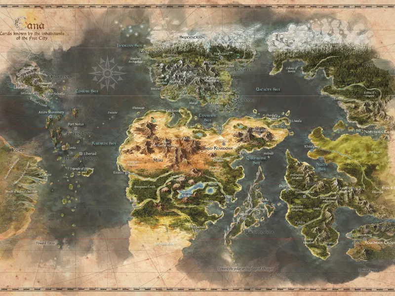 Eana is an entirely new campaign setting for your adventures. Following the sword & sorcery tradition, the adventurers will travel through grandiose landscapes and interact with exotic, colorful civilizations, from the sprawling metropolis of the Free City to equatorial Acoatl.