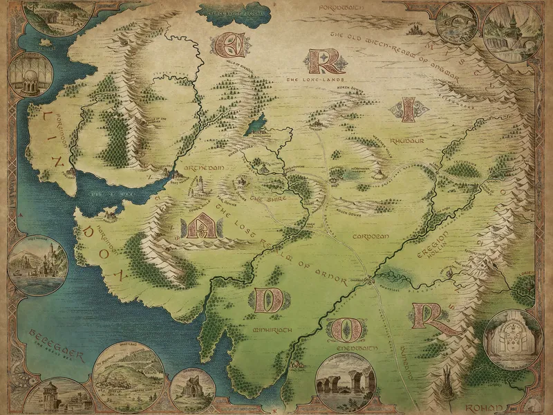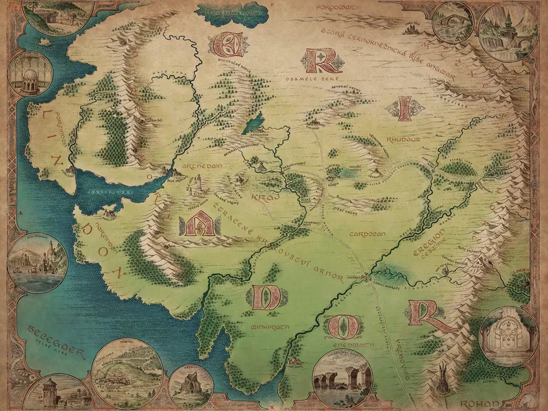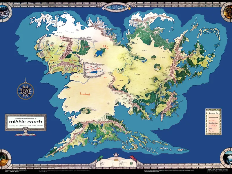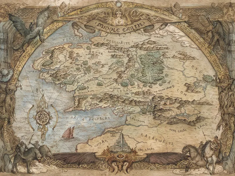 Middle-earth is the primary continent in J.R.R. Tolkien's legendary world of Arda, serving as the rich, detailed setting for The Hobbit, The Lord of the Rings, and The Silmarillion, representing the "human-inhabited world" in a mythological past, filled with Elves, Men, Dwarves, and Orcs, and is now a vast fantasy realm brought to life in books, films, and games.