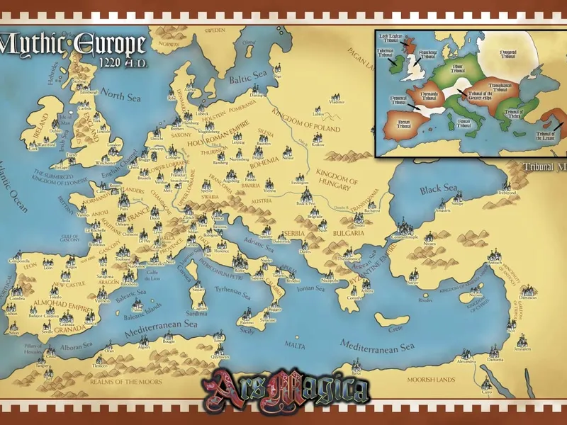 Mythic Europe is the main setting of the Ars Magica family of books. It is a version of the historical Europe wherein the lore and legends are true. God exists and His agents roam Earth. The Devil plot with its minions. Wizards go around doing magic, and faeries try to corrupt mankind for their strange purposes.