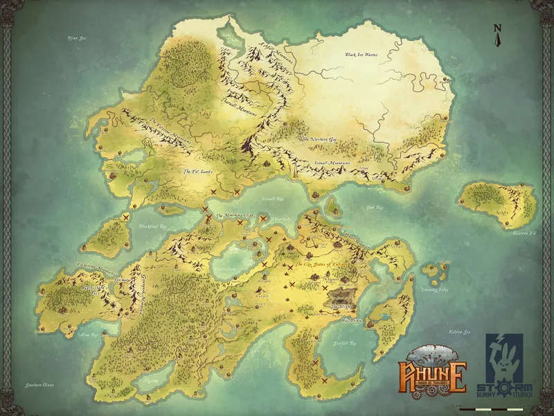 Originally inspired by some of the greatest campaign planar and steampunk settings, Rhune: Dawn of Twilight is truly its own genre, one we affectionately call stormpunk. It is a genre inspired by steampunk, but one that took a radically different turn, both in terms of culture and technology. While it certainly has some similarities to steampunk as a genre, stormpunk trades steampunk's monocle, Victorian sensibilities, and top hat for a drinking horn, a gear-shaped torque, and a gun-sword. It embraces electricity, but throws off the yoke of Earth's normal history and asks the question—what if Tesla had been a magician? What if magic and electricity had developed side by side? What if "steam" had lost the technological race and man learned to call power from the very sky itself? All of these questions, alongside the explorations they give birth to, are what give life to stormpunk.