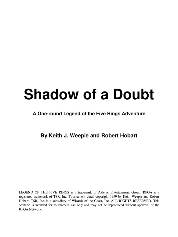5e Game System Product (D&D 5th Edition Compatible) Adventures in Rokugan D20 System / OGL Product (D&D 3.0 Compatible) Dungeons & Dragons (3rd Edition) Legend of the Five Rings (1st Edition) Legend of the Five Rings (2nd Edition) Legend of the Five Rings (3rd Edition) Legend of the Five Rings (4th Edition) Legend of the Five Rings Live-Action Roleplaying Legend of the Five Rings Roleplaying Game (5th Edition)