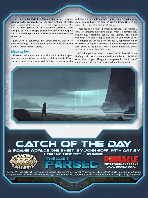 Characters cross the cosmos under the auspices of JumpCorp, an intergalactic megacorp that contracts exploration, security, bounty hunting, transportation, and everything in between. Adventures take explorers from system to system and planet to planet, finding strange new civilizations, discovering terrifying creatures, and battling pirates, hostile aliens, rival corporations, and stranger things!