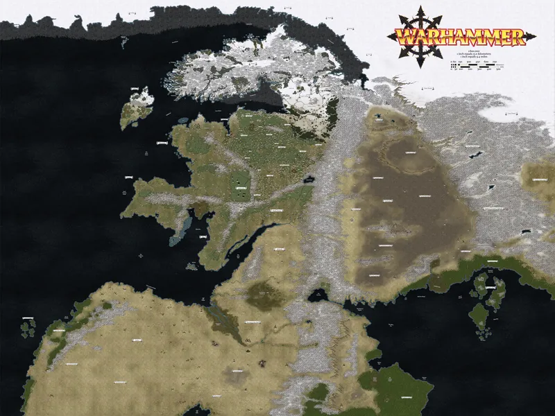 The Warhammer World is known as the Old World and it bears many geographical and cultural similarities to our own, particularly in and around the Empire, which is very similar to medieval Germany. The medieval tone is garnished with some rennaisance flavour, most notably in the inclusion of firearms and explosive weapons, but also noticeable in clothes. Fantastical elements - including greenskins, chaos, skaven and undead - are added to the mix and have become more prevalent with successive incarnations of the Warhammer Fantasy Battle game.