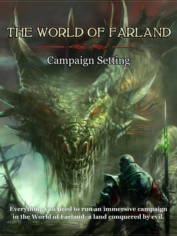 The World of Farland is a meticulously mapped and detailed campaign setting designed to be used with the Fifth Edition of the World's most popular Roleplaying game, Dungeons & Dragons®. Farland has a detailed history spanning many millenia, providing a rich, realistic backdrop that many campaign settings lack. Every clue and detail that players discover will lead them to further, nearly limitless aspects of the world, providing an immersive gaming experience.
