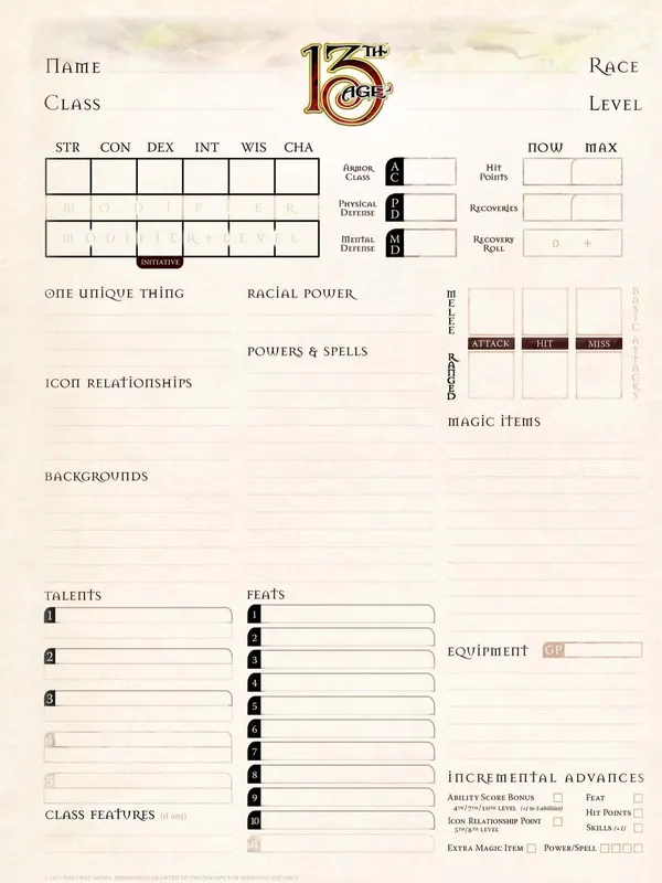 13th Age is the new d20-rolling fantasy roleplaying game by Jonathan Tweet (3rd edition D&D, Over The Edge, Everway) and Rob Heinsoo (4th Edition D&D). It's a familiar fantasy game with spell books, Armor Class, dungeons, hit points, portals to other worlds and owlbears ripping people’s arms off. But it’s also a story-focused game where every character is unique, relationships are their most powerful resource and failure is more interesting than success.