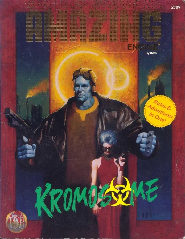 KROMOSOME includes complete rules for a dark future setting of biotechnology, cybernetic enhancements, a living computer net, and the struggle for fame, wealth, and survival in a hostile and crumbling world. Sign on for the most mind-bending, body-altering role-playing game ever. Stay alive, get rich, and try to stay human.