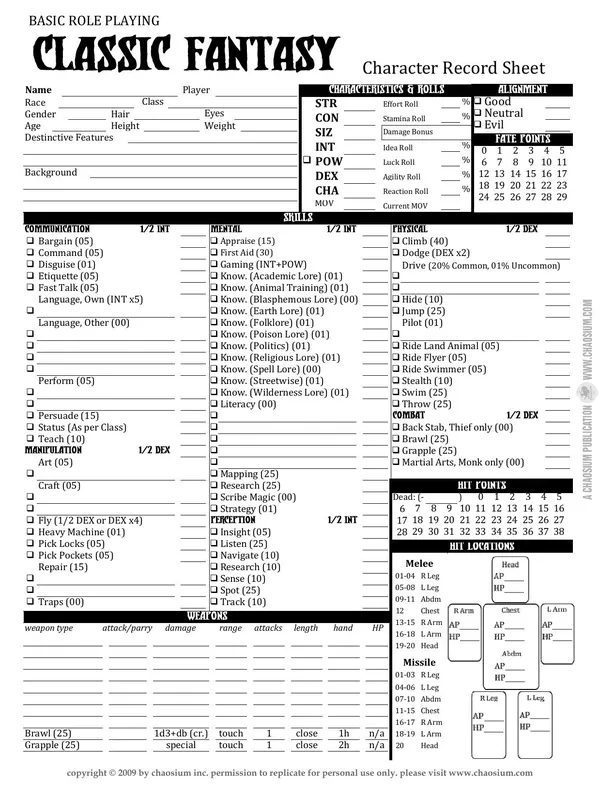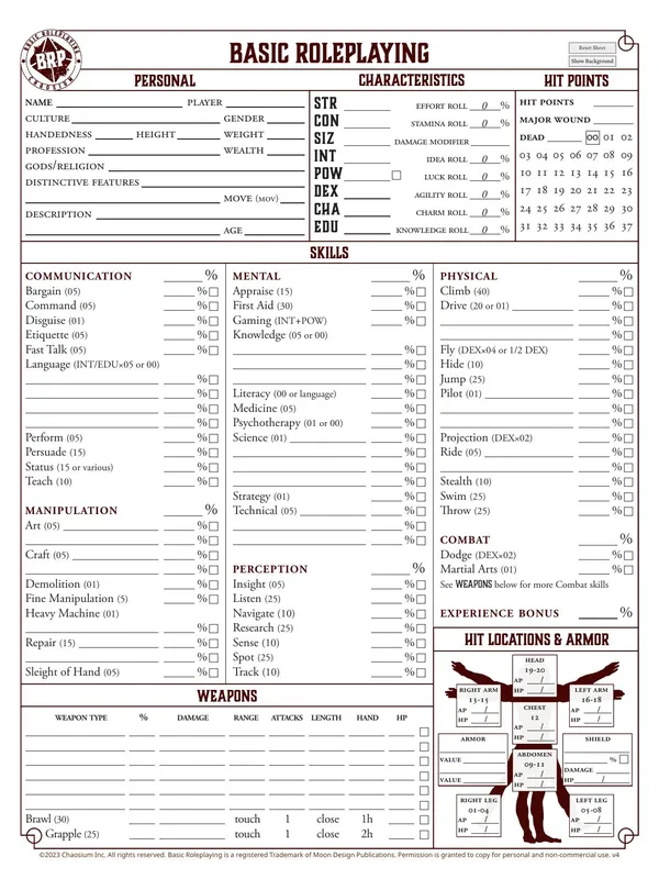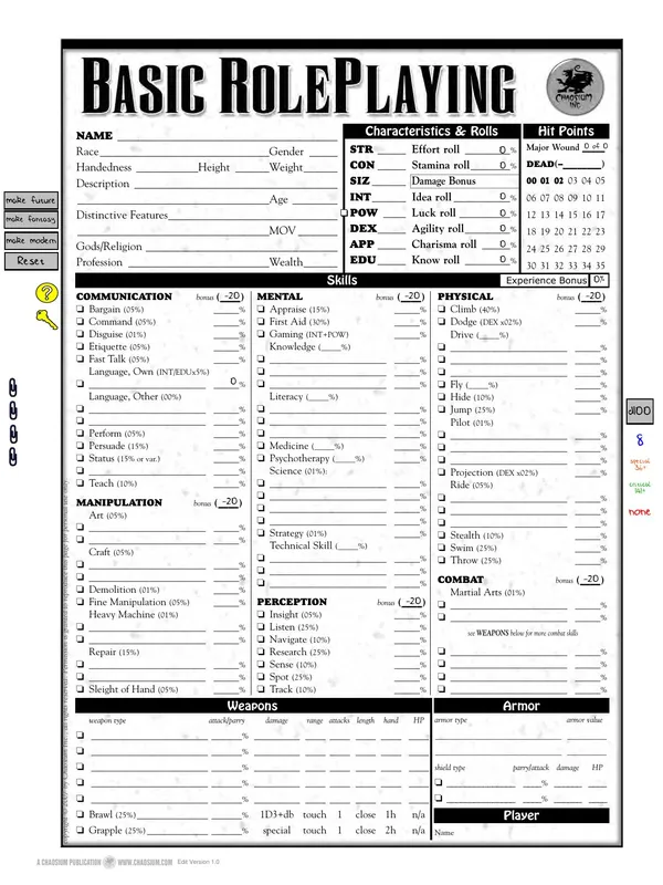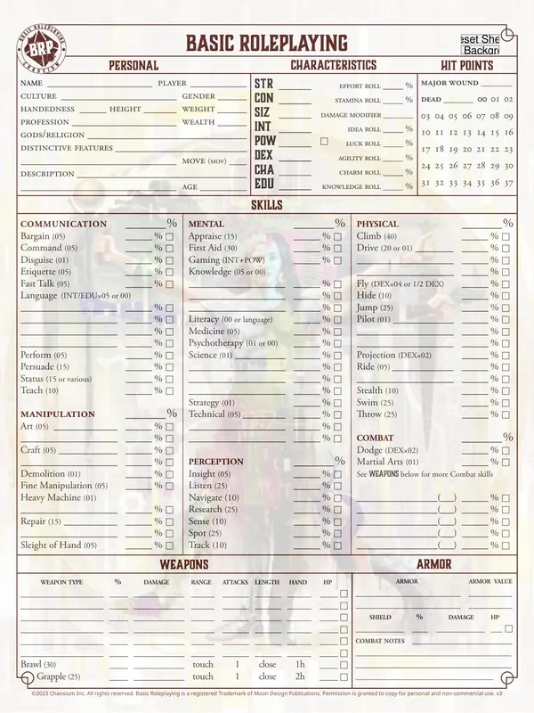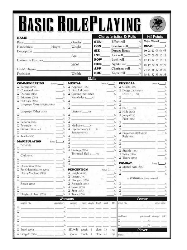 Chaosium's generic roleplaying product with a history spanning back to the 1970s.