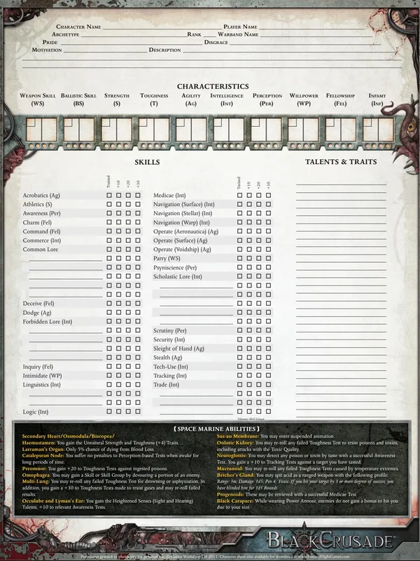 Dark Heresy, Rogue Trader, and Deathwatch each portray loyalty to the Imperium from multiple perspectives. Throughout them all, however, one common factor is Chaos: the ubiquitous antagonist responsible for much of what defines this immersive setting. But with Black Crusade, players can examine this exciting universe through an entirely new lens. Who are the characters, and what set them on the path of corruption? Are they willingly in league with the enemies of humanity, or are they merely the deluded slaves of forces far beyond their comprehension?