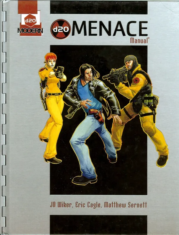 Designed for use with the d20 Modern Roleplaying Game, the d20 Menace Manual presents a host of villains, monsters, and other adversaries to pit against the heroes in any modern roleplaying game. It contains extensive real-world information, including information about existing organizations such as the CIA and write-ups of well-known mythical creatures such as the yeti and sasquatch. Adversaries for all levels of play are available, as are various allies, and there is extensive information on organization and factions that heroes can either join or combat.