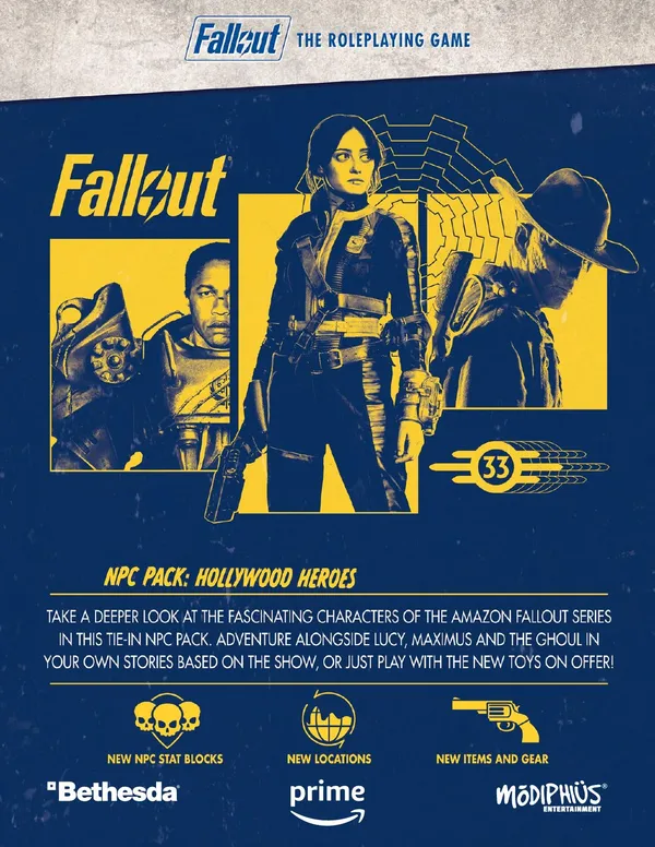 Take a deeper look at the fascinating characters of the Amazon Fallout series in this tie-in NPC pack for Fallout: The Roleplaying Game.