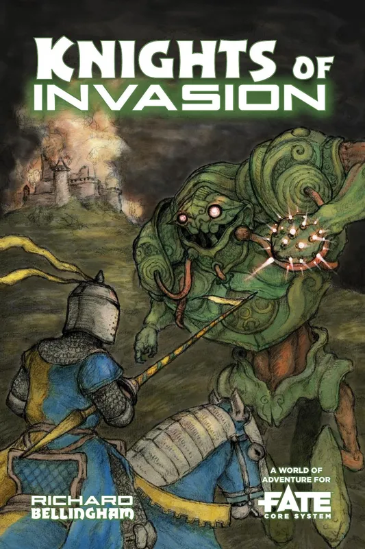 Knights of Invasion uses Fate Core to play. This 54-page supplement includes:
