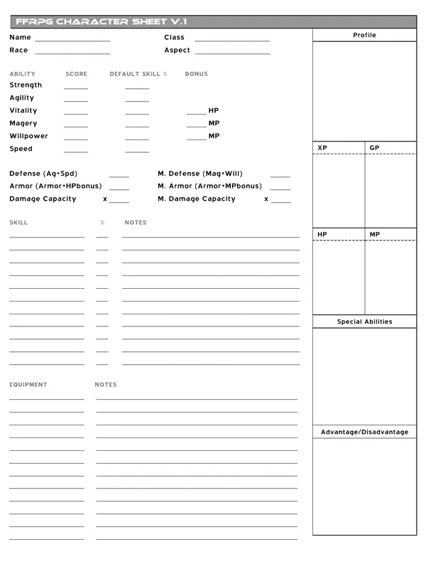 Come live the life of a character from your favorite Final Fantasy, from the classic Dragoon to the destructive magic of the Black Mage to the enigmatic techniques of the Mime.