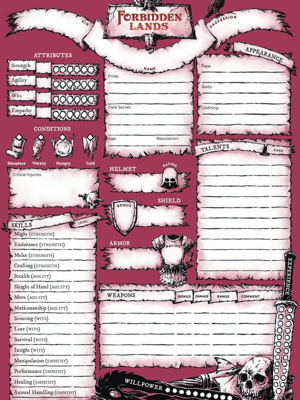 Forbidden Lands is a new take on classic fantasy roleplaying. In this open-world survival roleplaying game, you’re not heroes sent on missions dictated by others - instead, you are raiders and rogues bent on making your own mark on a cursed world. You will discover lost tombs, fight terrible monsters, wander the wild lands and, if you live long enough, build your own stronghold to defend.