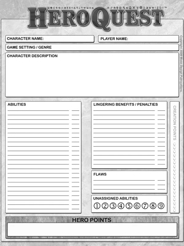 HeroQuest encourages creative input from your players, resulting in an exciting, unpredictable narrative created through group collaboration. Its resolution methods and scalable character levels make it equally suited for any genre, from epic fantasy to satirical soap opera.