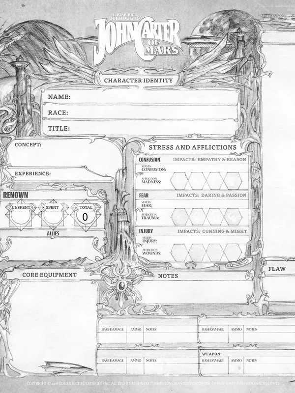 John Carter of Mars: Adventures on The Dying World of Barsoom is a planetary romance tabletop role-playing game. We've created it in under license and with the cooperation of the estate of Edgar Rice Burroughs, author of the original Barsoom novels and with the guidance of Scott Tracy Griffin one of the leading scholars of his works to ensure utmost authenticity. Using a pulp-action inspired lite variant of Modiphius' 2d20 system called Momentum, John Carter of Mars allows players to take the role of various adventurers and heroes as they travel, battle, and romance their way across the a wondrous and dangerous world known to its natives as Barsoom. Play as John Carter, the princess Dejah Thoris, the fearsome Thark Tars Tarkas or you can create your own new heroes from a wide variety of options.