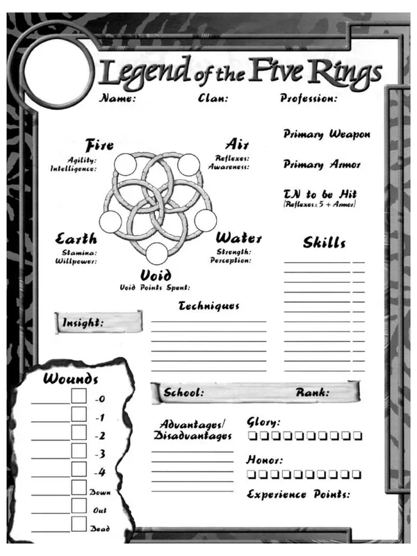 Welcome to Rokugan, the Emerald Empire. Rokugan is a place of mystery and wonder, inspired by the legends of feudal Japan and other places in the far East. It's a world of samurai and ninja and spellcasting shugenja, where dragons soar the skies and danger lurks in every shadow. The Legend of the Five Rings Role-Playing Game (L5R RPG) allows you to take the role of one of those legendary figures in search of honor, glory and adventure.