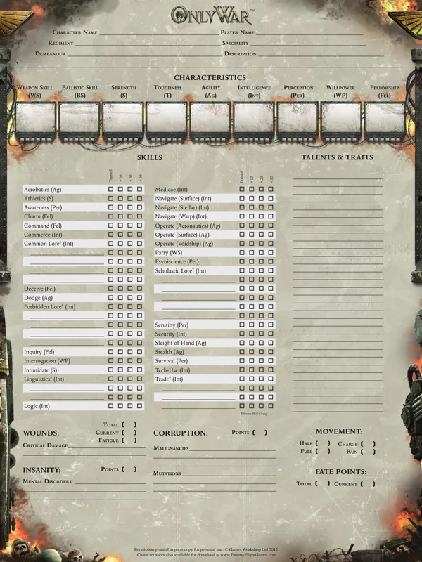 Only War is a standalone Warhammer 40,000 roleplaying game experience in which players take on the roles of soldiers in the Imperial Guard, the galaxy-spanning armies of the God-Emperor. Fully compatible with FFG’s other Warhammer 40,000 Roleplay titles, this comprehensive game system explores a previously unseen side of life in the Imperium of Man.