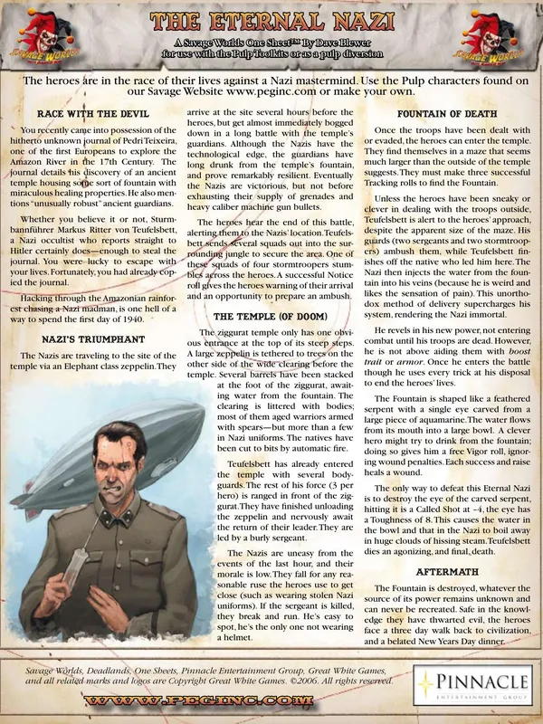 Savage Worlds is the core ruleset for all of Pinnacle’s roleplaying games. For the current version, see Savage Worlds Adventure Edition (SWADE).