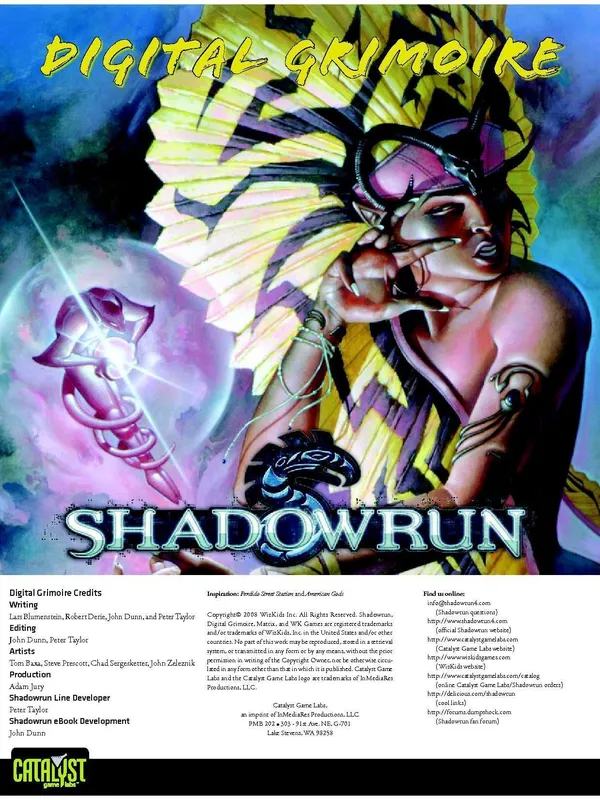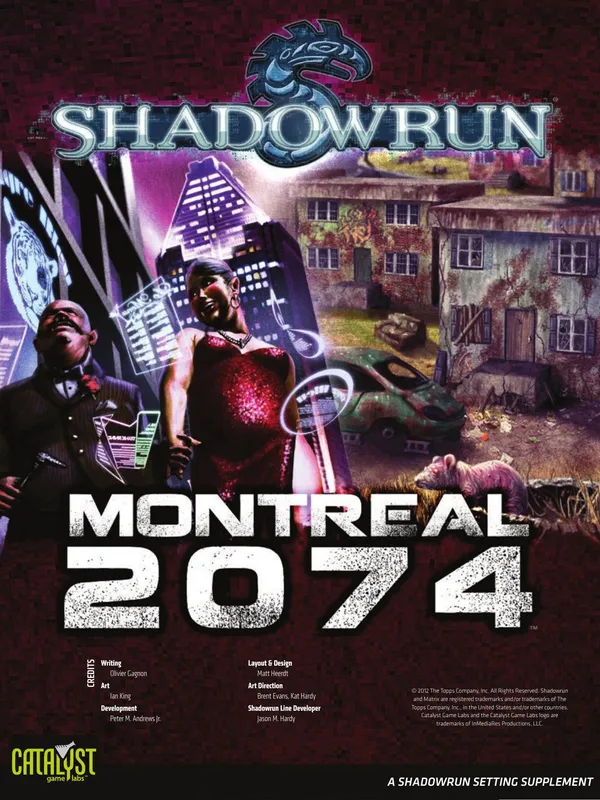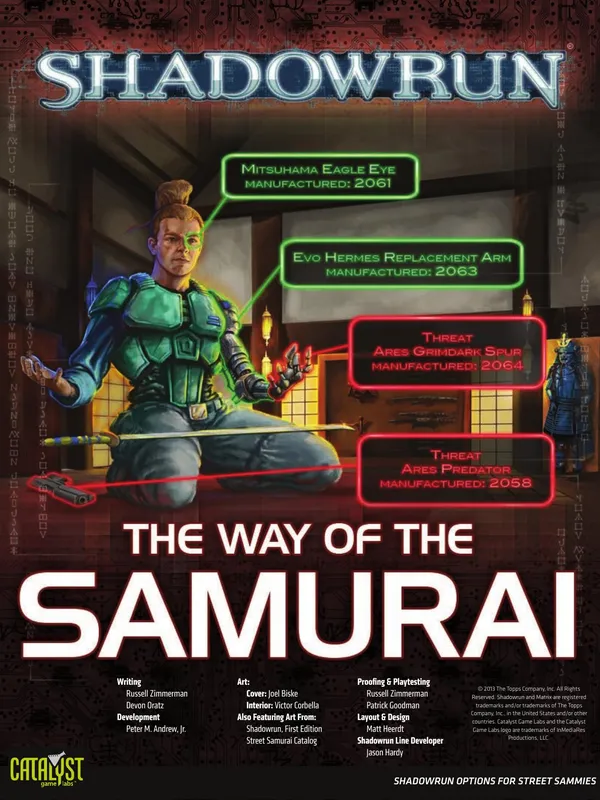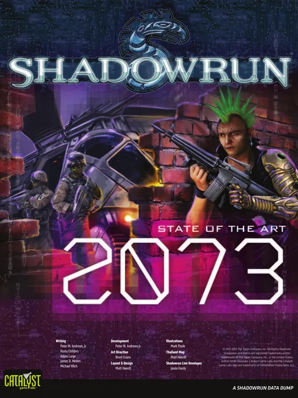 The year is 2070. The world is not only Awakened — it's wired. Cyber and bioware implants make your meat body better-than-flesh, while the wireless Matrix enhances your perceptions with hyper-real senses. Deals are made in steel and lead more often than gold or nuyen; success and failure live only a razor's edge apart. Creatures of myth and legend walk the streets, while the arcane skills of spellslingers are in high demand. Above it all, monolithic megacorps bleed the world dry, sabotaging each other in covert cutthroat competition as they go to war over the bottom line.