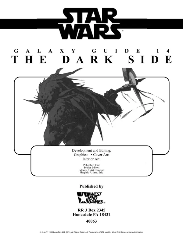 This is a pseudo-RPG container to hold all of the Star Wars D6 compatible products. This container is for products that aren't tied, officially, to Star Wars D6 by West End Games. This may include unofficial material produced back in the 90s as well as more modern material that is designed for use with the system.