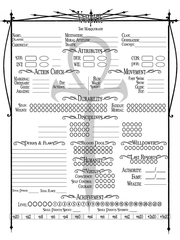 Vampire: The Masquerade was an original RPG allowing players to explore a dark world of modern vampires in a Gothic-Punk world. The game took players away from traditional elements of RPGs and vampiric lore and into a modern 1990s view of style and performance which was much darker and bleaker than before.