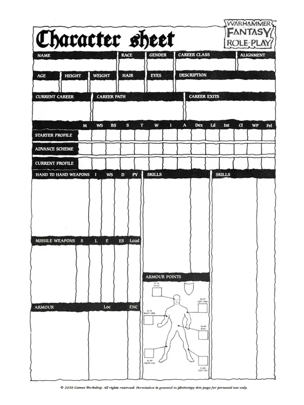 "Warhammer Fantasy Roleplay (WFRP) was first published in 1986 by Games Workshop Ltd. as a spin-off to their successful Warhammer: The Mass Combat Fantasy Roleplaying Game (1st Edition) miniatures game and shares the same setting, The Old World.